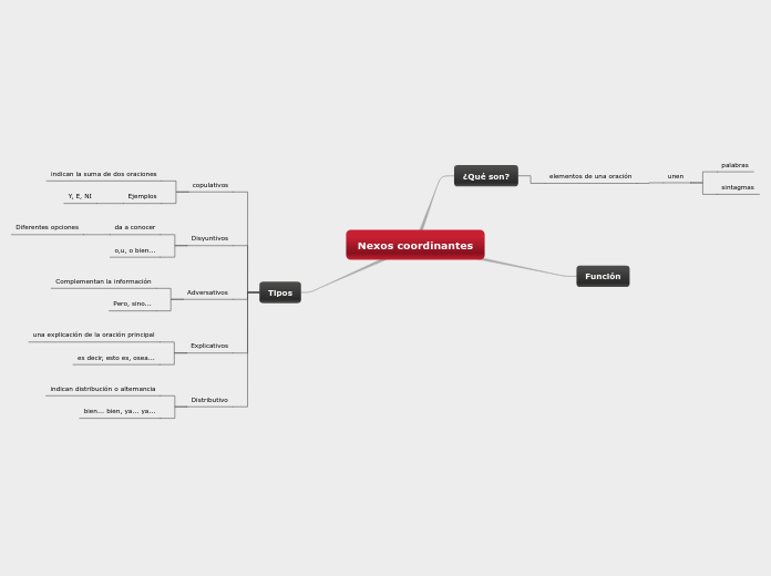 Nexos Coordinantes / / La palabra nexo deriva del latín nodus que significa nudo.. Escrito el 27 de junio de coordinantes copulativas: Copulativos (y, e, ni, que). Un nexo es una morfema o partícula gramatical cuya función sintáctica es unir unas palabras, sintagmas u oraciones con otros de manera coordinantes o subordinantes. Los tipos de nexos pueden ser de igualdad (nexos coordinantes) o de dominio de la primera palabra sobre la siguiente (nexos subordinantes). Agrega a los anteriores coordinantes: